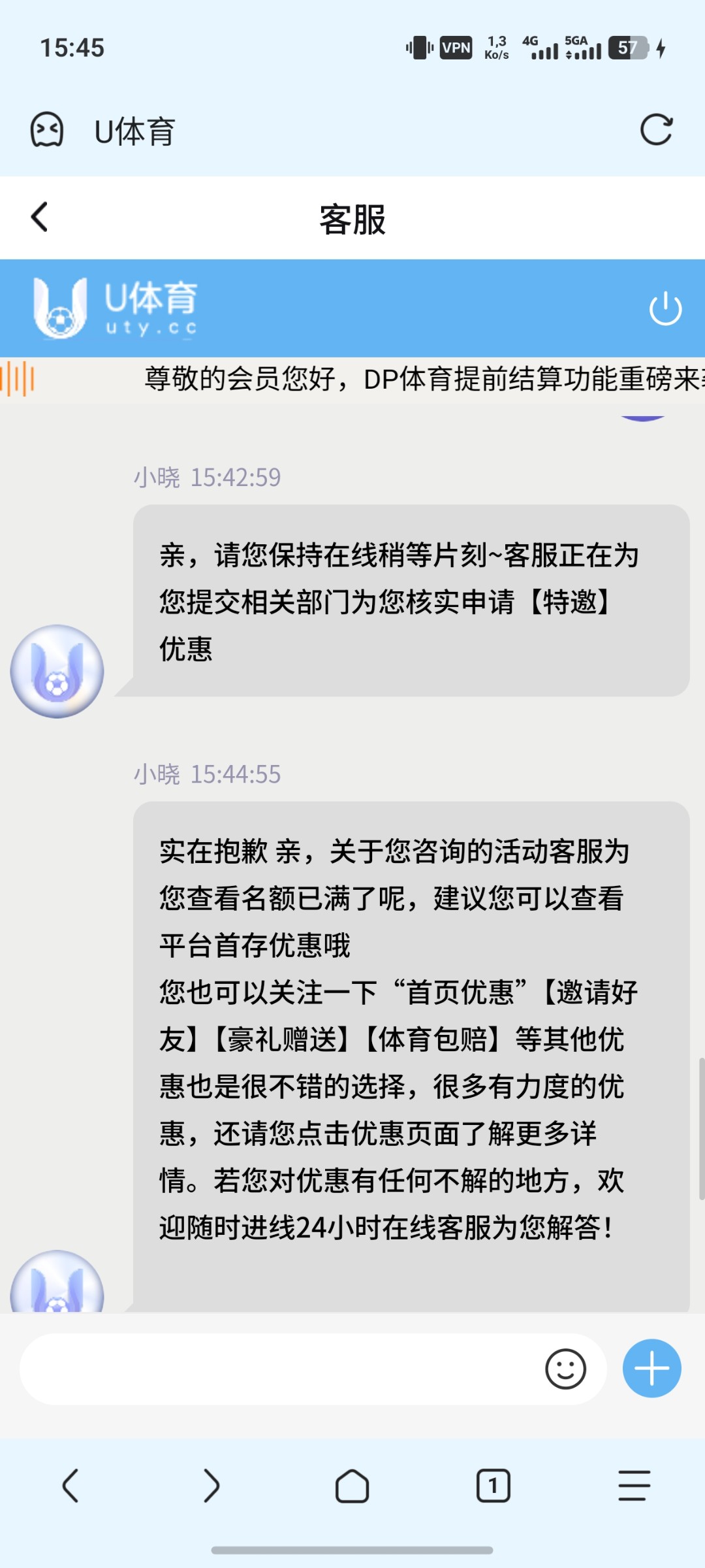 充值完申请首存彩金跟我说名额满了,太垃圾了