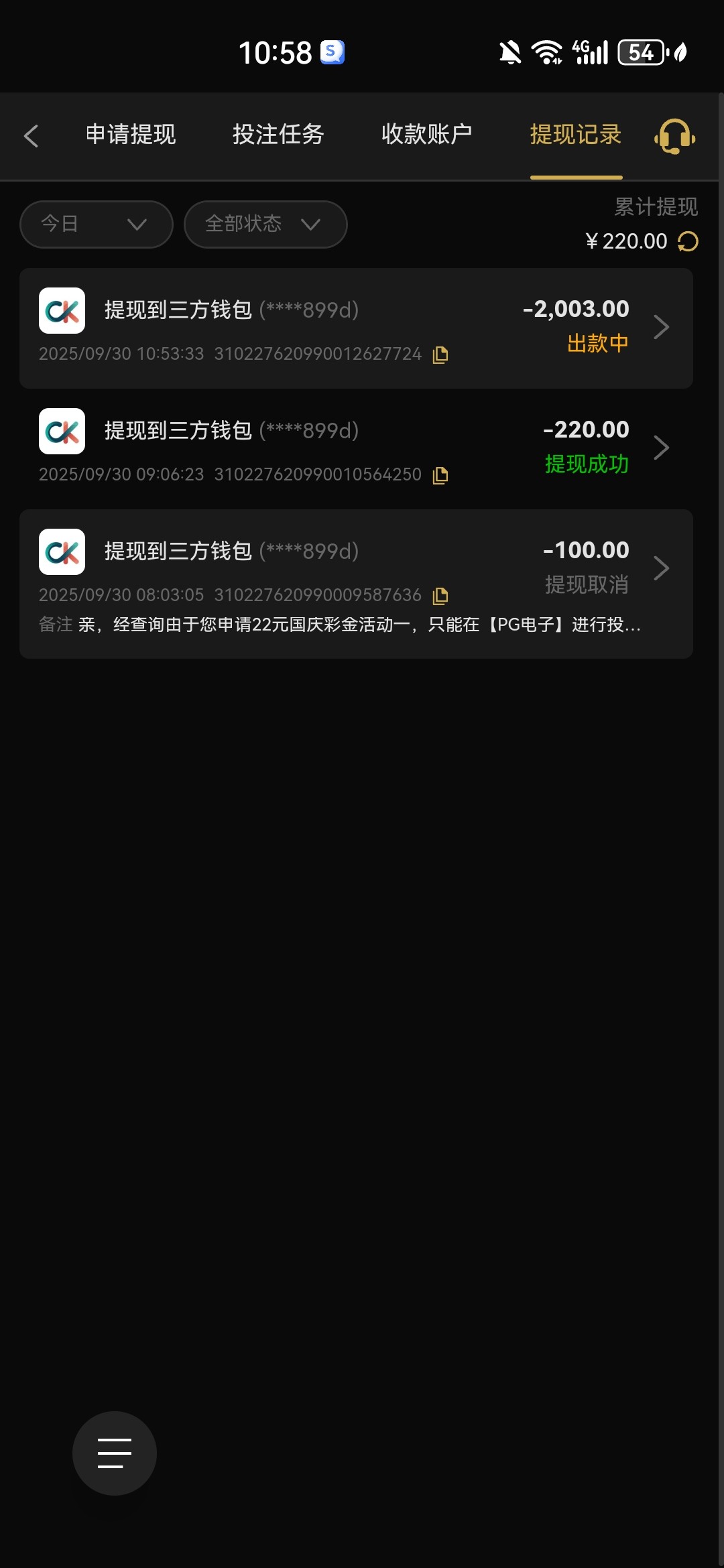 722国庆送22打到220提出,然后充100送100