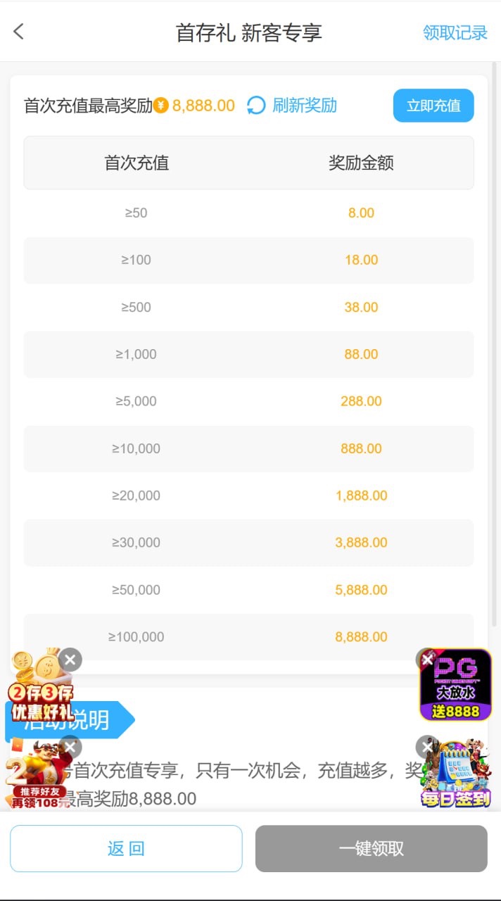 ✅ 活动期间内充值次数以及充值金额满足活动要求,可获得对应奖励,最高奖励8888元