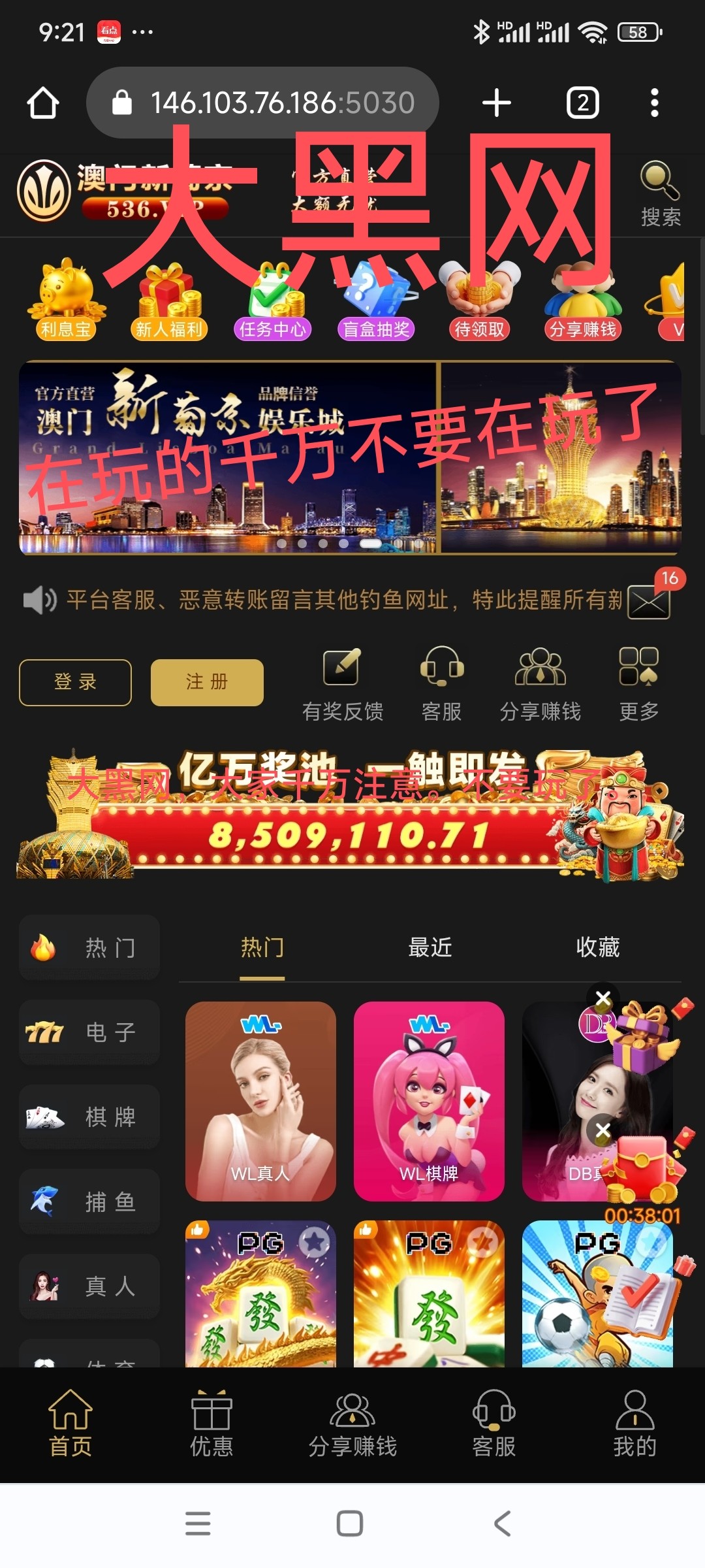 充值的都黑。千万注意