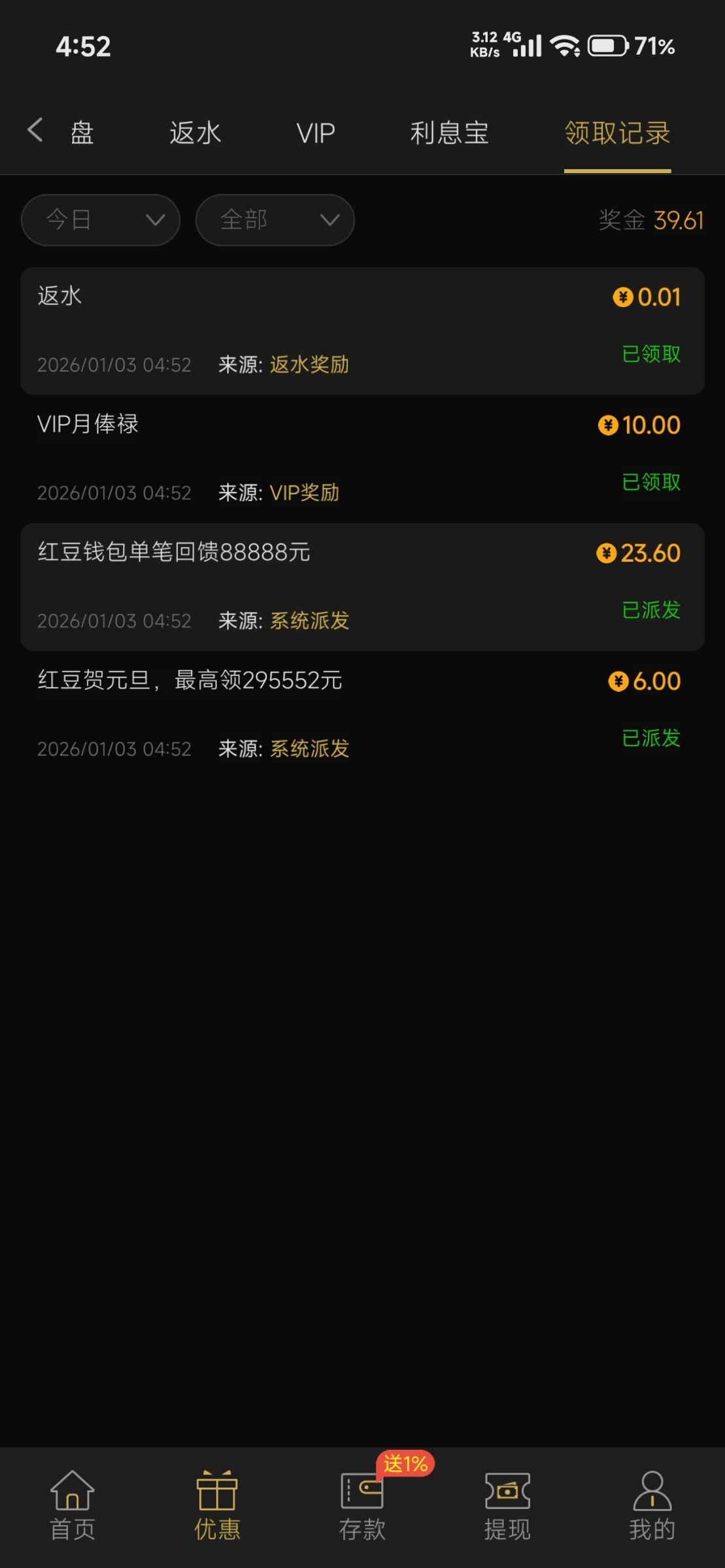 7133 红豆钱包历史单笔回馈